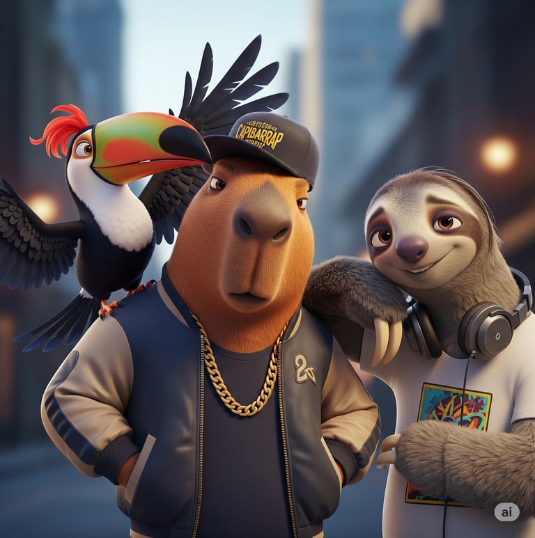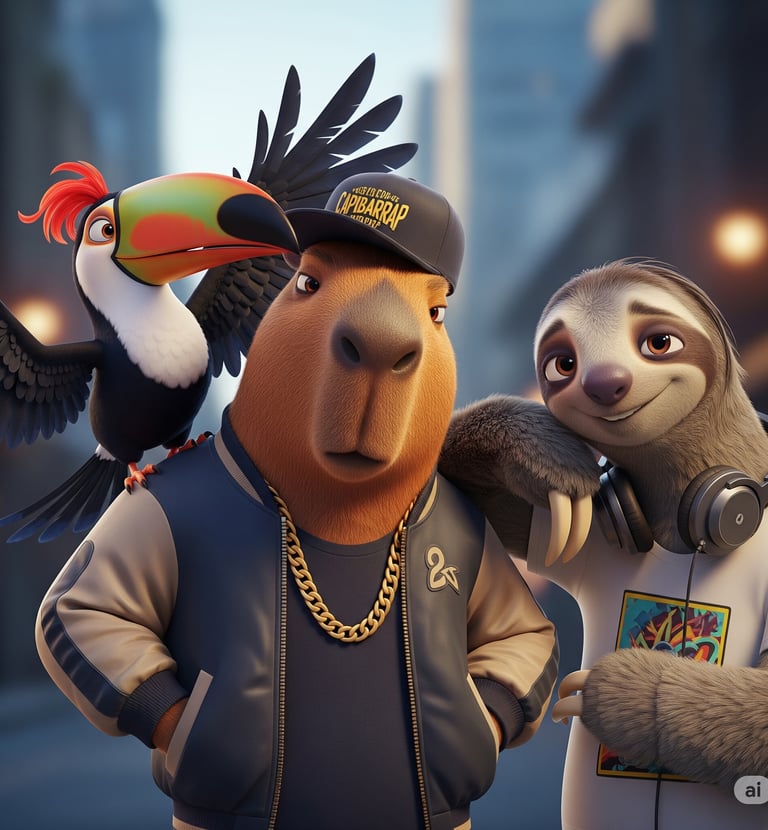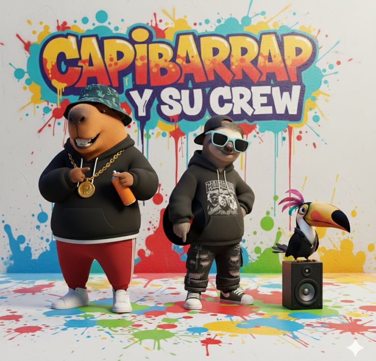 Capibarrap Junto a sus compañeros DJ Pérez Oso y B-boy Tuca, han dado vida a “Capibarrap y su Crew”, proyecto musical que une ritmo, creatividad y valores para niños y jovenes con mentes soñadoras